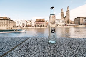 «Lokales Wasser 37» originates from the Uetliberg, our local mountain. It is pure spring water which is bottled on Rennweg - just on the other side of the river «Limmat». The fresh and balanced drinking water has only a short distance to move from water source to our guests.